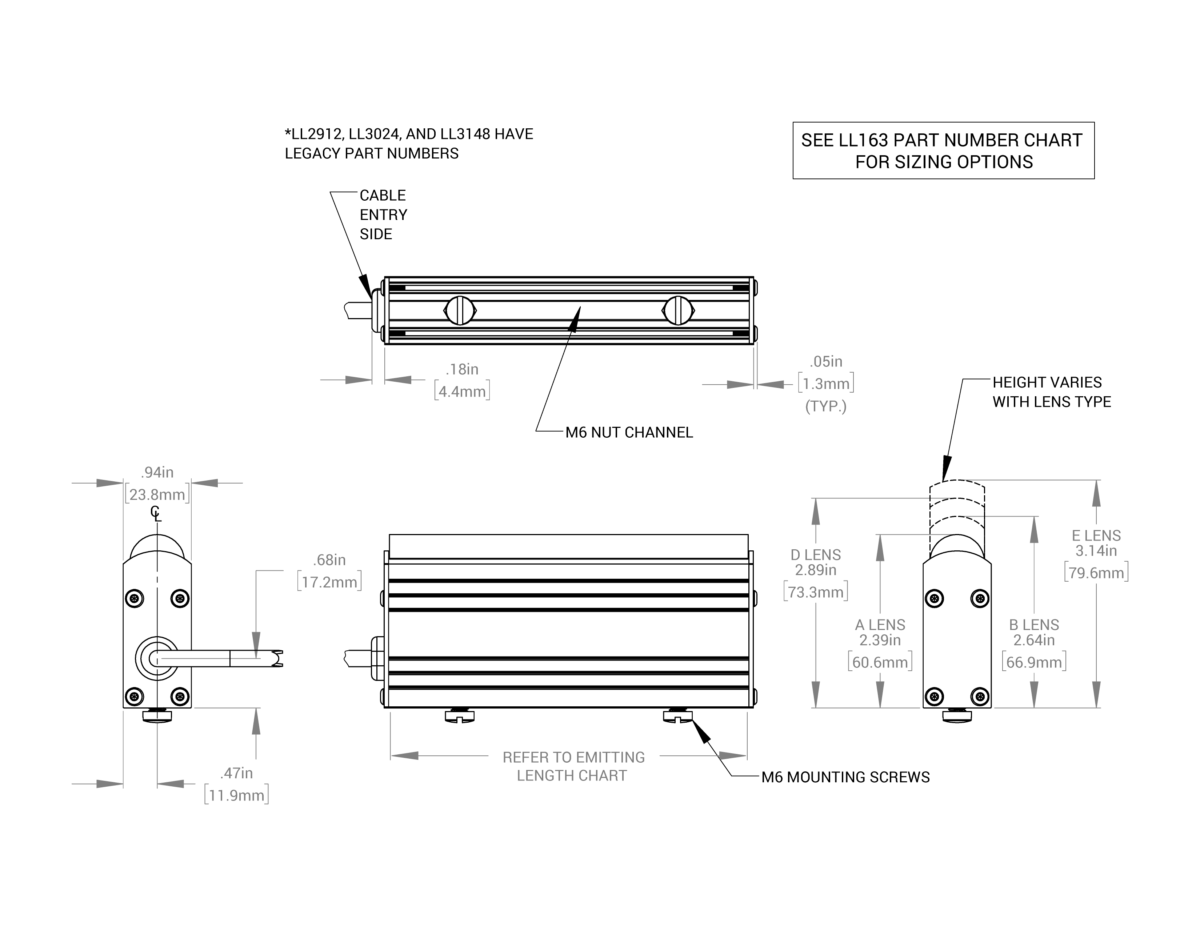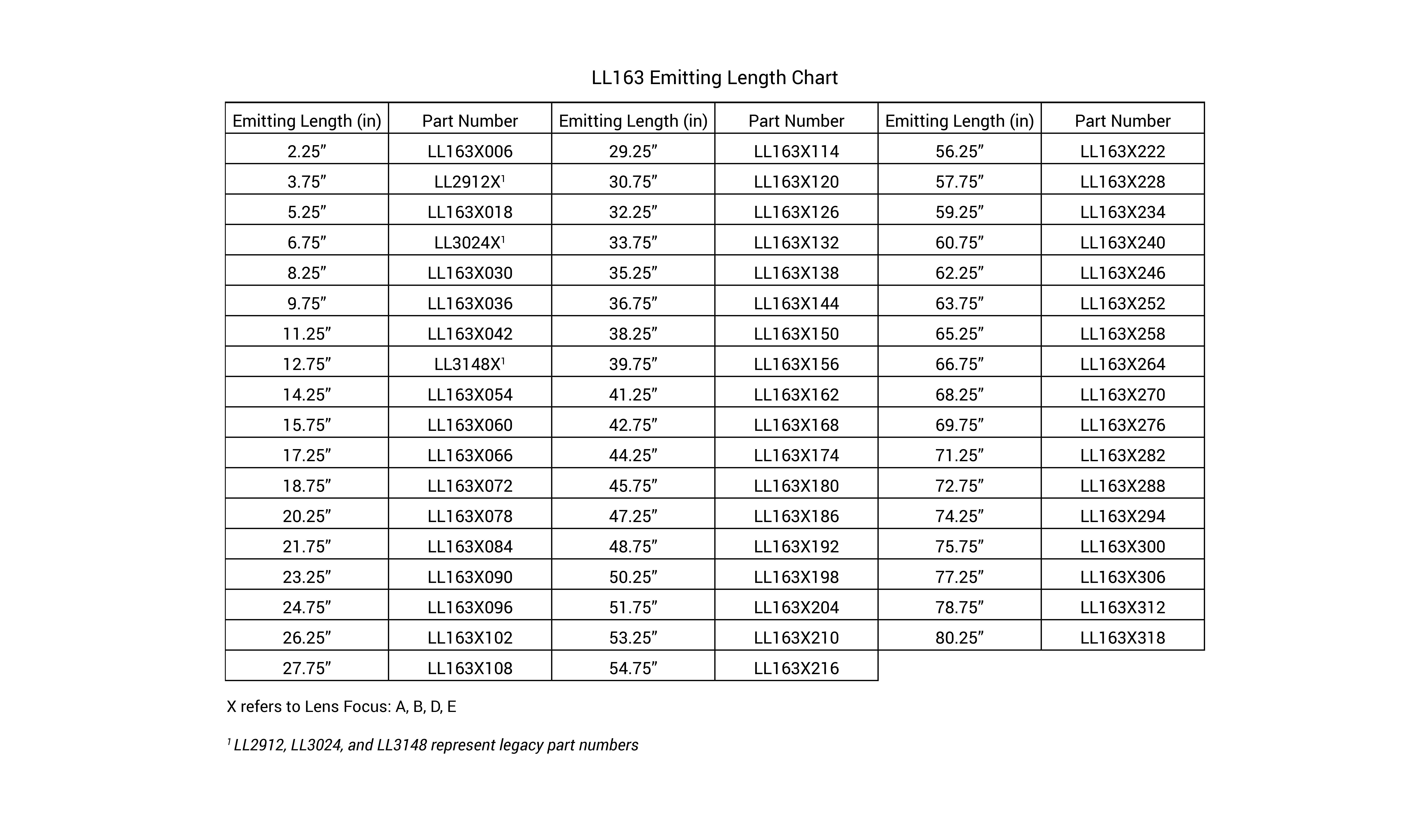 - LL163 derivatives include LL2912 (3”), LL3024 (6”) and LL3148 (12”) (which represent legacy part numbers)