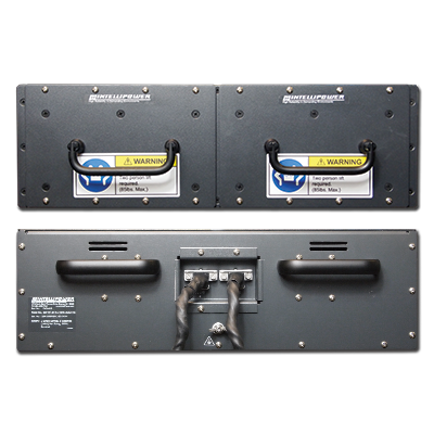 External Battery Module (EBM) with 2 strings of 9 (LiFePO4) lithium iron phosphate batteries (14 total) in 3U24" D enclosure |