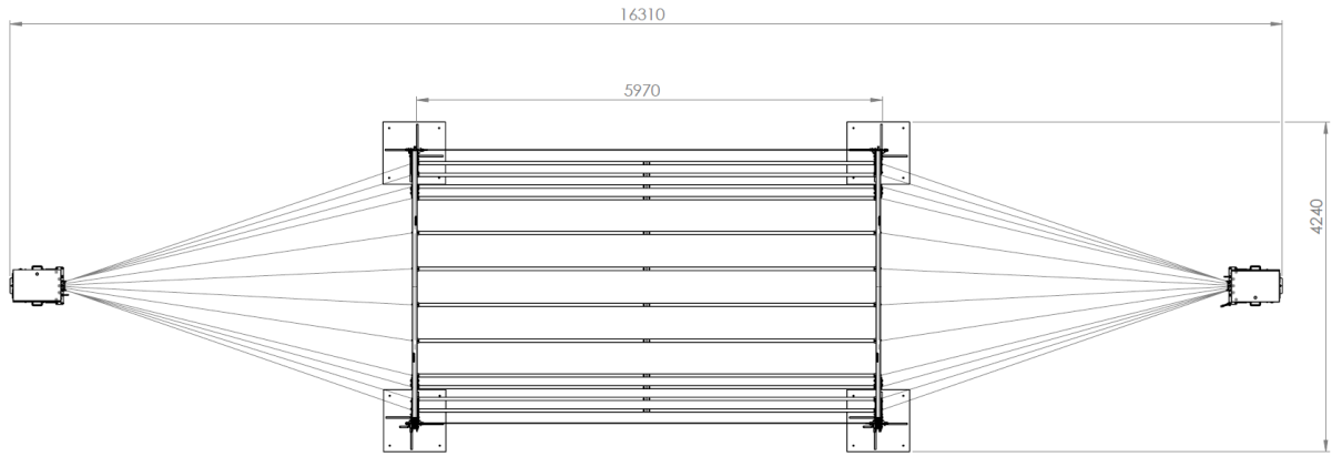 The E/H field generator is specially designed for the immunity test to electromagnetic fields on medium-sized devices. It can also be used for specific tests according to the MIL-Standards. The main advantage of this line is that the equipment under test can easily be successively tested in both polarisations. The height of the structure can be adjusted to optimize the field intensity. The line is electrically symmetrical and the impedance is adapted through transformers on both sides. The parallel plate line can also be used for immunity tests on automotive devices according to the European directive 2004/104/EC or to ISO 11451-2 and on broadcast receivers and associated equipment according to EN 55020.It consists of a structure to be placed in the chamber or in an open area test site. The 2 slopes of the structure and the line are made with wires. The structure can be dismounted easily in order to carry out other tests in the chamber. Some precaution must be taken if the field generator is installed close to metallic structures in order to avoid resonances.